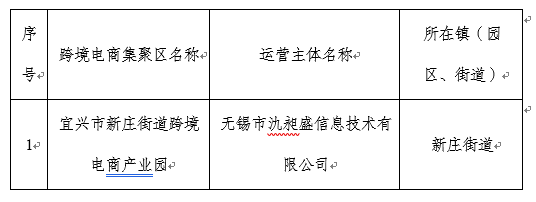 根據(jù)《江蘇省政府關(guān)于印發(fā)中國(南京)、中國(無錫)跨境電子商務(wù)綜合試驗區(qū)實施方案的通知》(蘇政發(fā)〔2019〕7號)、《宜興市跨境電子商務(wù)集聚區(qū)認(rèn)定辦法(試行)》相關(guān)文件精神,現(xiàn)將我市2019年跨境電子商務(wù)集聚區(qū)名單公示如下: