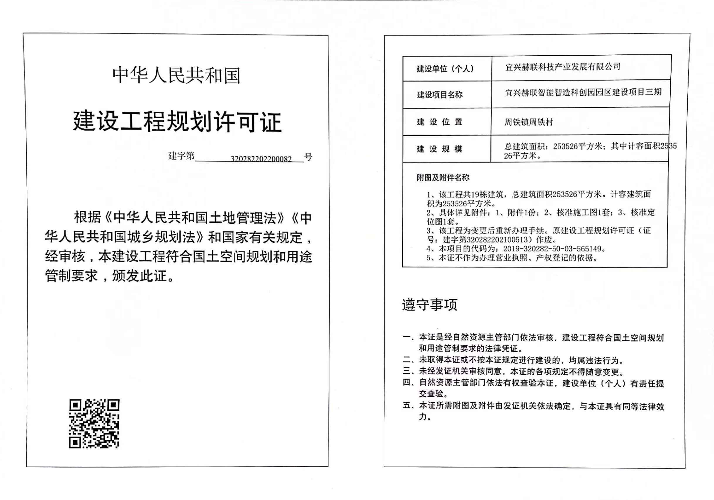 建設(shè)工程規(guī)劃許可證公示(宜興赫聯(lián)智能智造科創(chuàng)園園區(qū)建設(shè)項(xiàng)目三期)