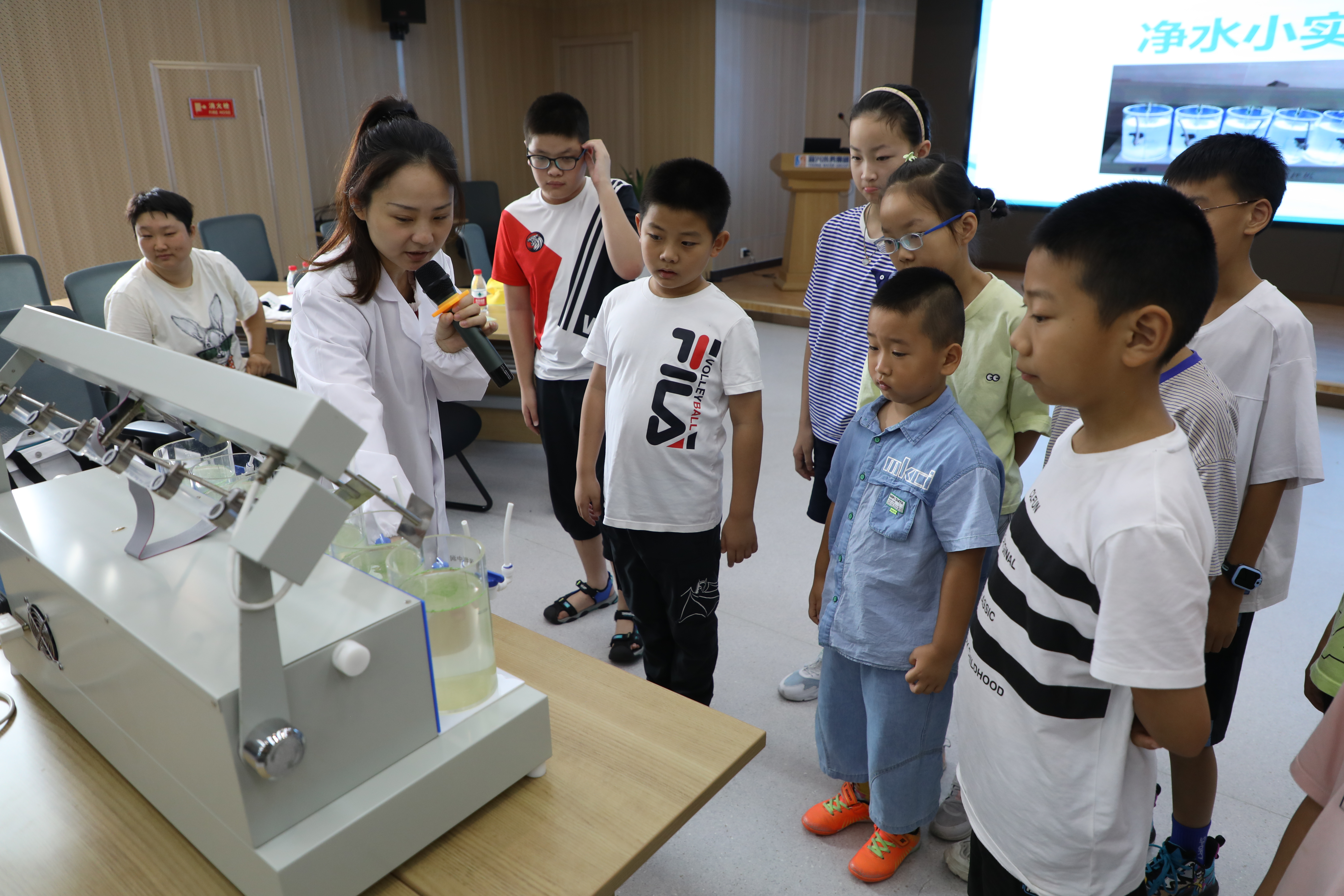 大家走進(jìn)氿濱水廠,在工作人員的講解下,了解到自來(lái)水需要通過(guò)抽水、沉淀、過(guò)濾、消毒等步驟,才能安全衛(wèi)生地輸送到千家萬(wàn)戶。
