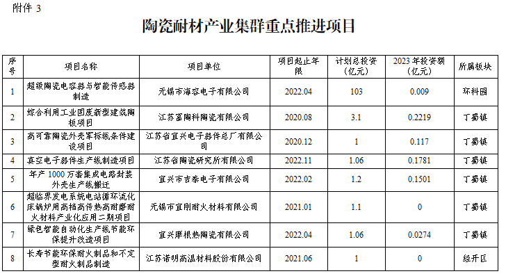 3.陶瓷耐材產(chǎn)業(yè)集群重點(diǎn)推進(jìn)項(xiàng)目