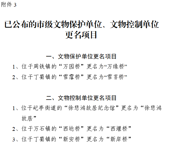 3、已公布的市級文物保護單位、文物控制單位更名項目