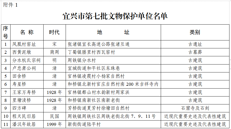 附件:1、宜興市第七批文物保護單位名單