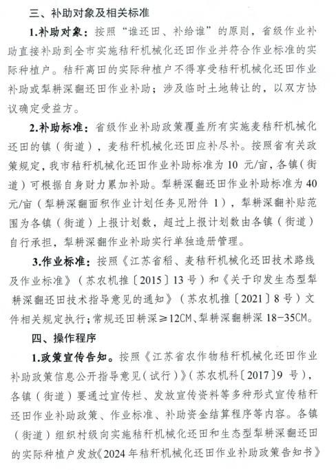 宜興市秸稈機(jī)械化還田暨生態(tài)型犁耕深翻還田實(shí)施辦法
