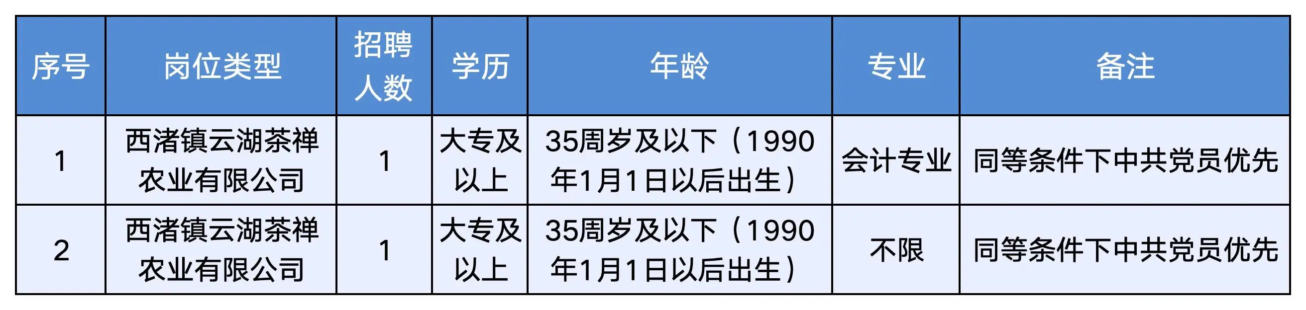 5、具有崗位要求的其他條件(詳見下方《2025年西渚鎮(zhèn)公開招聘云湖茶禪農業(yè)有限公司工作人員崗位簡介表》)。