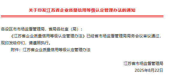 江蘇省企業(yè)質(zhì)量信用等級認定管理辦法