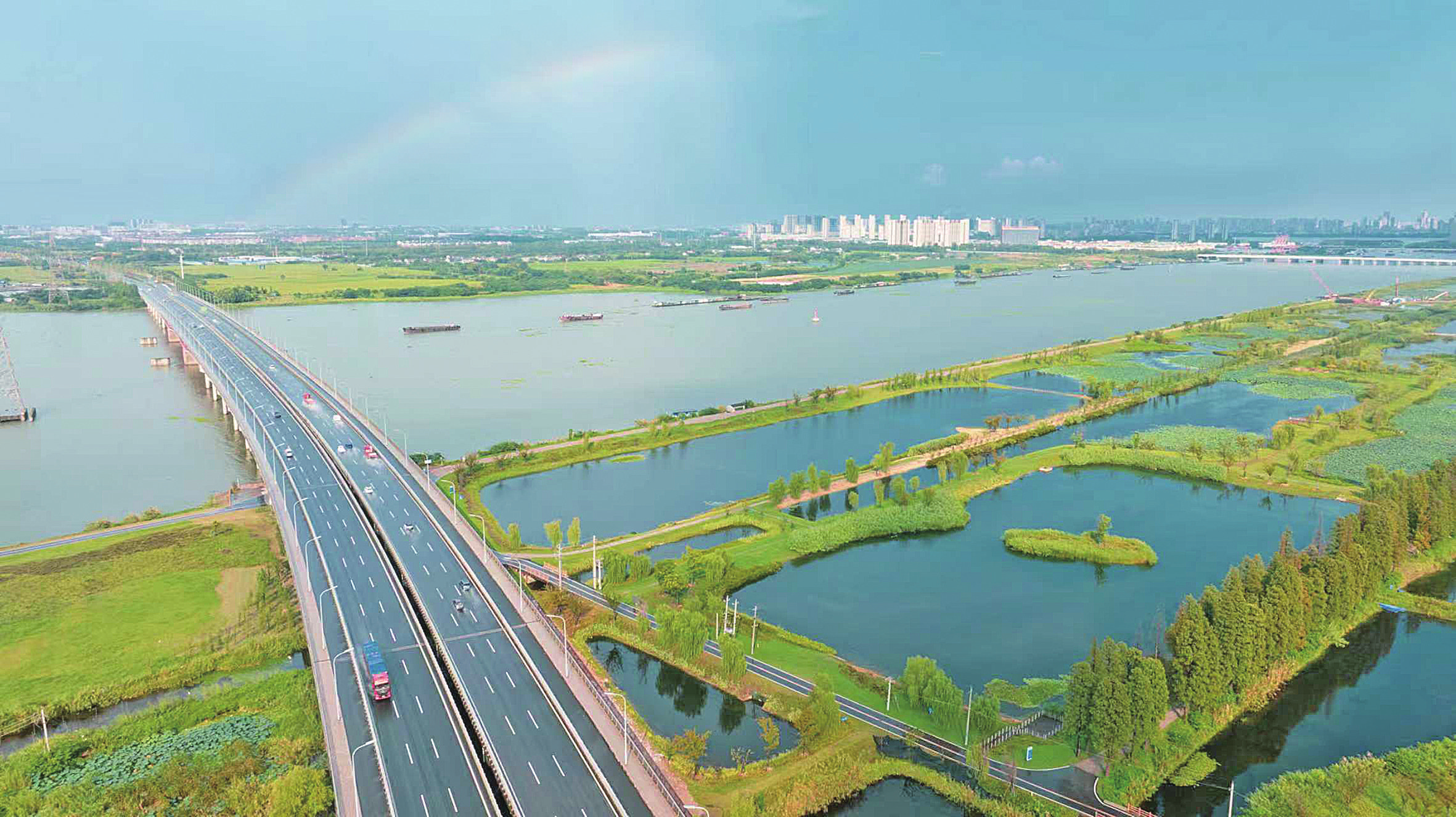 本周以來,強(qiáng)對流天氣頻發(fā),不僅為暮夏帶來陣陣清涼,更以絢爛的光束為天空繪就生動畫卷。9月16日下午,陣雨過后云開霧散,一道絢麗的彩虹橫跨西氿大橋天際,與遠(yuǎn)處的丁達(dá)爾效應(yīng)遙相呼應(yīng)——陽光透過云隙,形成清晰可見的放射性光束,在銅官山上灑下萬丈光芒。兩大氣象景觀隔空對話,美不勝收。